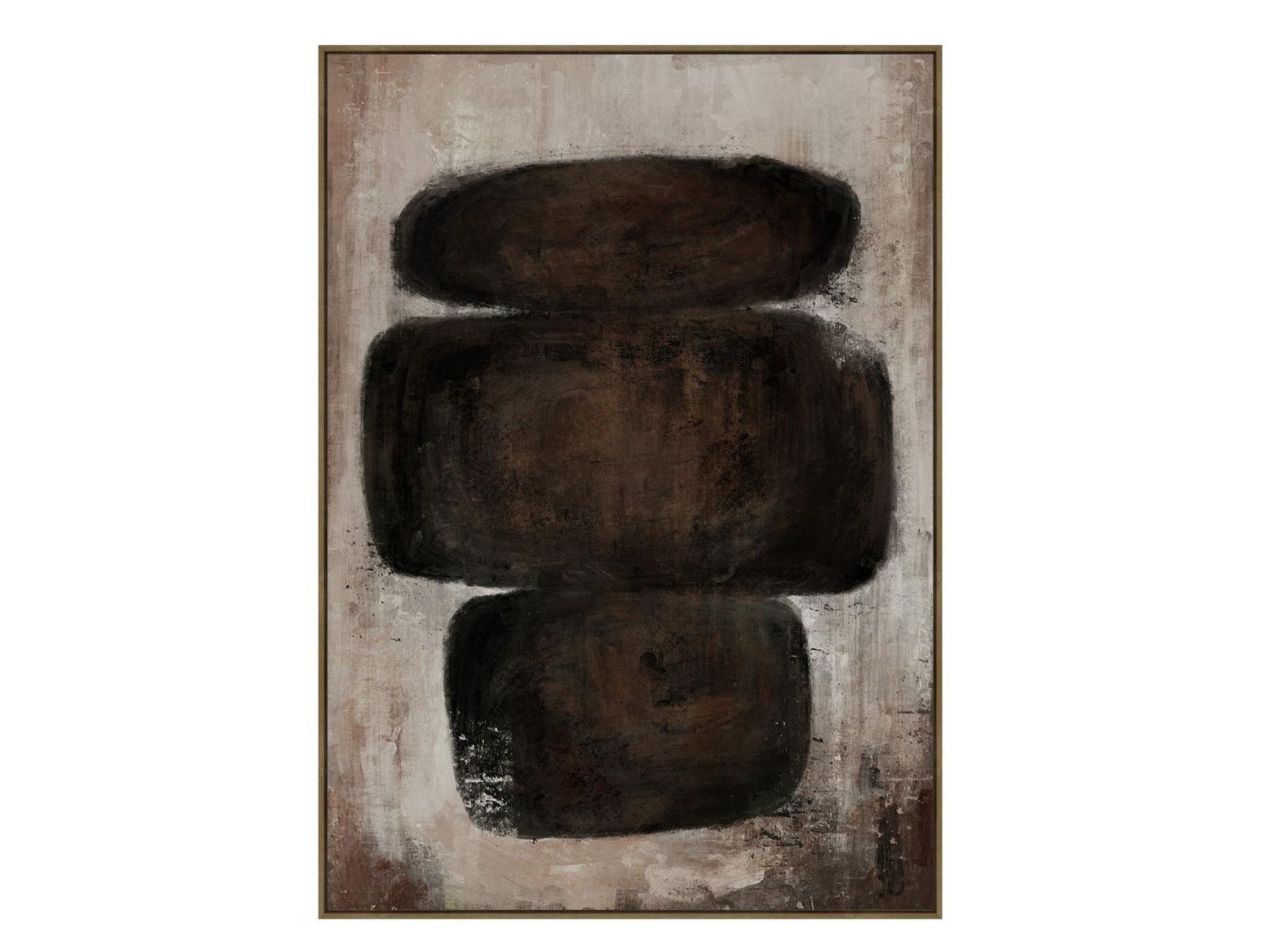 The heavy textured paint and hessian base gives The Trifold Art a tectile presence, with three abstract softly blurred forms emerging from the canvas.