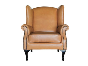 This occasional chair has a classic wingback design with a plain back, and is combined with classical curved feet. Small details like studs (leather) of piping (fabric) are added by hand to the curved armrests that makes this occasional chair even more special. Only Whiskey leather is available for online order. For more leather options, please enquire in store.